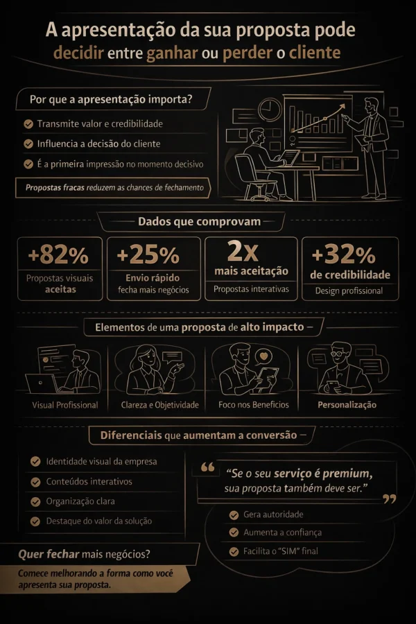 A proposta comercial é uma ferramenta crucial para qualquer negócio que busca conquistar novos clientes. A forma como você apresenta essa proposta pode fazer toda a diferença no processo de fechamento de vendas. Neste artigo, vamos explorar como um layout bem estruturado, a apresentação clara e a facilidade de distribuição e compartilhamento podem impactar positivamente suas taxas de conversão.